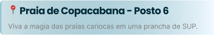 Com instrutores certificados, foco na segurança e no bem-estar, oferecemos experiências autênticas para quem quer conhecer o Rio de Janeiro de um ângulo totalmente novo.